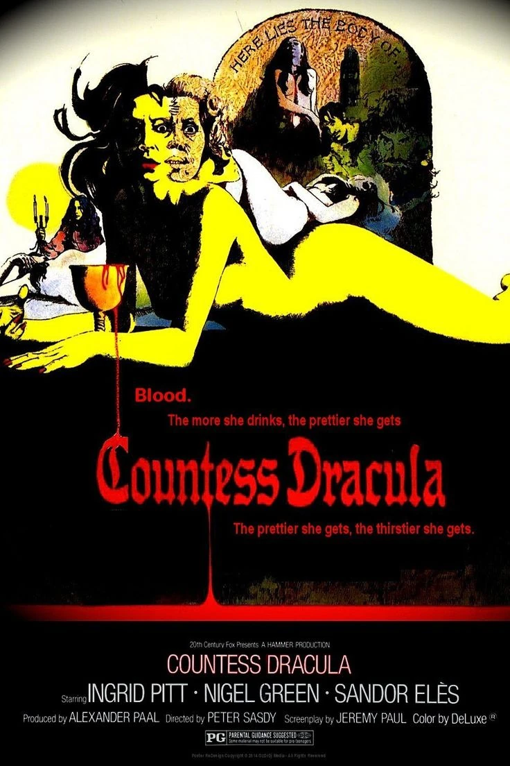 Countess Dracula is a 1971 British Hammer horror film directed by Peter Sasdy, produced by the late Alexander Paal, and starring the late Ingrid Pitt, the late Nigel Green, the late Maurice Denham, the late Sandor Elès, Lesley-Anne Down, and the late Patience Collier. This film was inspired by the real and infamous story of the late Countess Elizabeth Báthory de Ecsed.