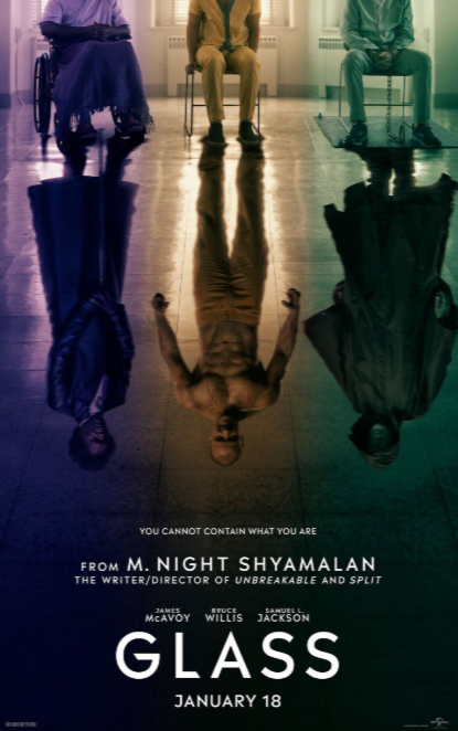 Glass is a 2019 American thriller film directed by M. Night Shyamalan, and a sequel to Split. It stars Bruce Willis, Samuel L. Jackson, Spencer Treat Clark, Charlayne Woodard, James McAvoy, Anya Taylor-Joy, Sarah Paulson, Adam David Thompson, and Luke Kirby.