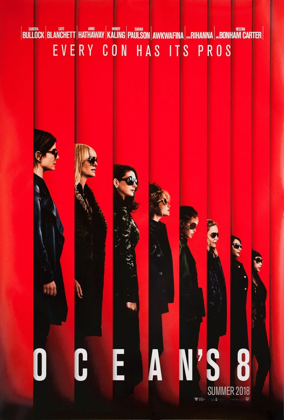 Ocean's Eight (stylized as Ocean's 8) is a 2018 American Warner Bros. Pictures action, comedy, and crime film directed by Gary Ross, produced by Steven Soderbergh and Susan Ekins, and starring Sandra Bullock, Anne Hathaway, Cate Blanchett, Mindy Kaling, Sarah Paulson, Rihanna, Awkwafina, and Helena Bonham Carter. It is the fifth film of the film series Ocean's.